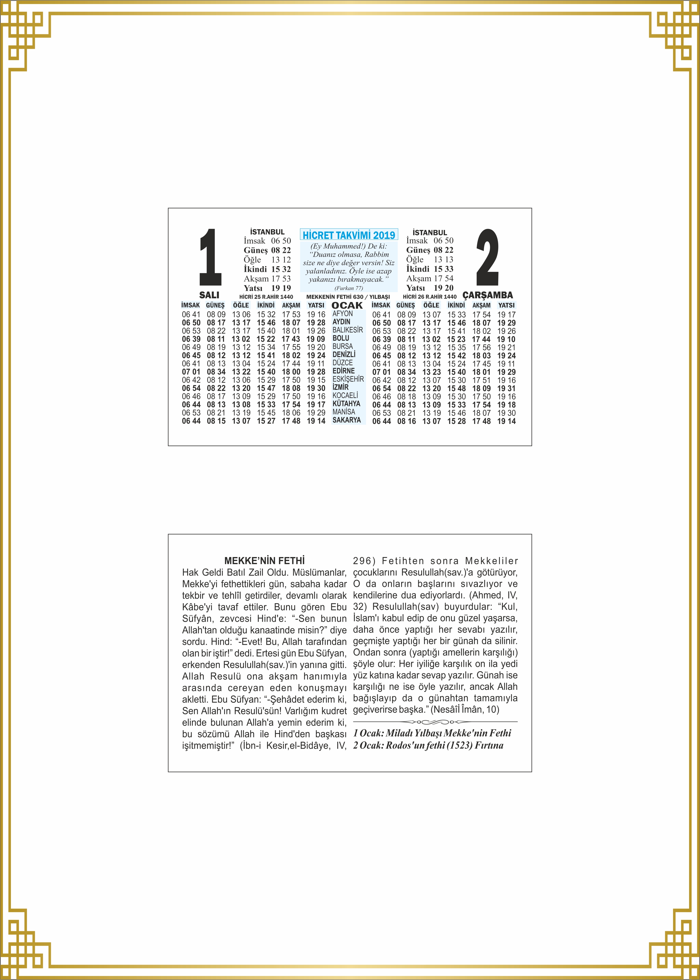 Hicret Takvimleri - © 2011, Tel: 0312 384 10 30